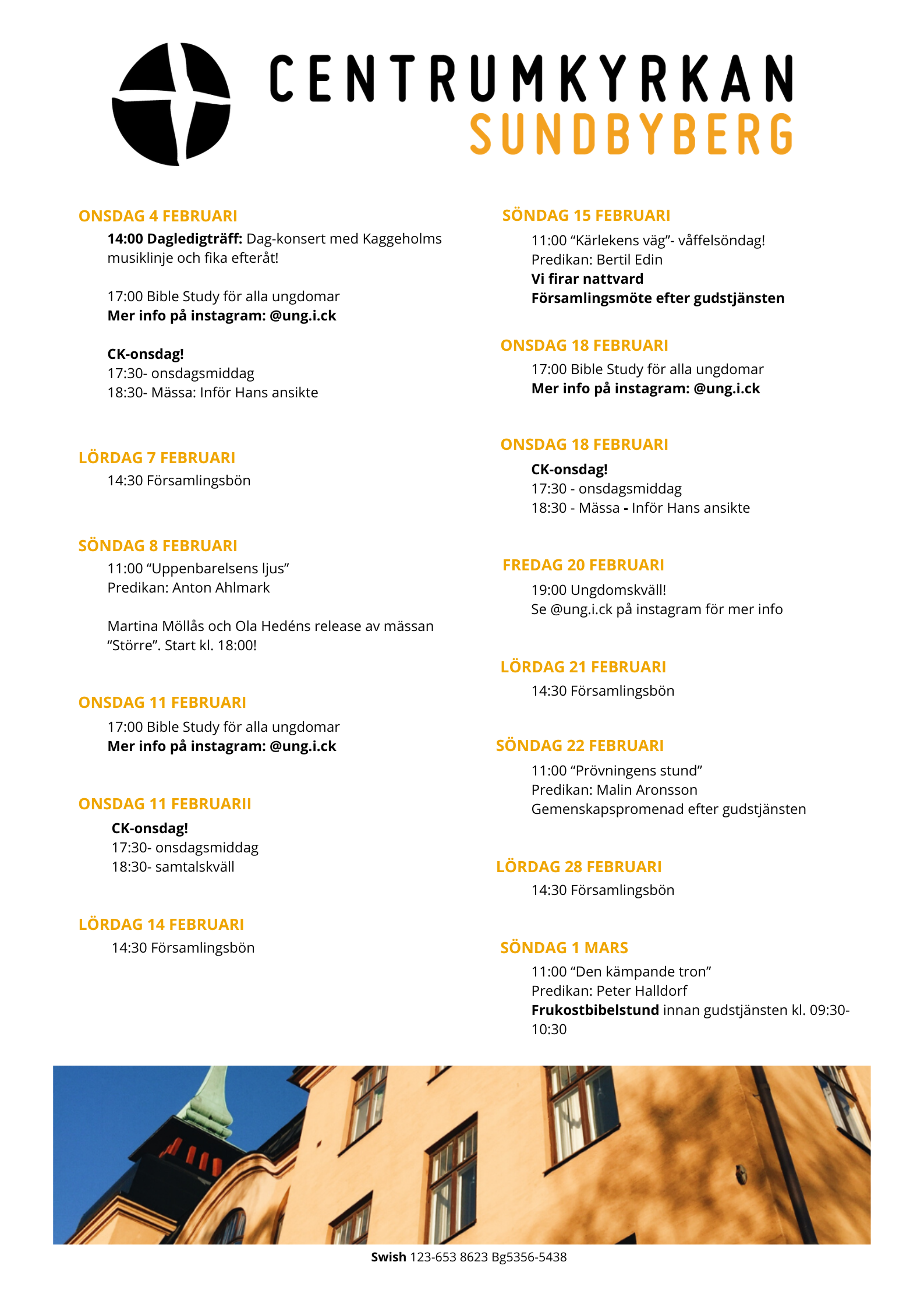 Detta händer i Centrumkyrkan under februari månad 2026: